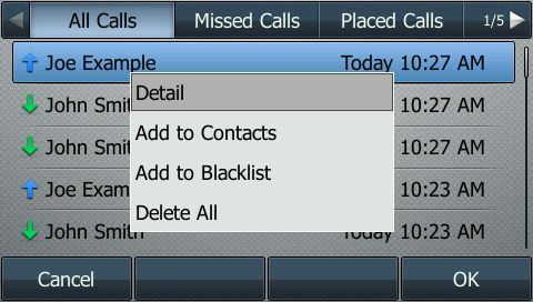 Comvergence Enterprise HostedPBX handsets feature a History function that provides information on all calls on the phone.