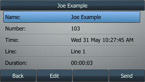 From the call history screen you can get additional information on a call by selecting “Option” then “Detail”