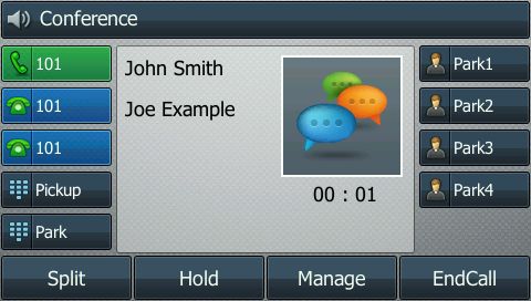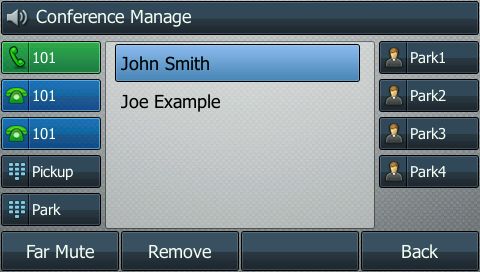 Pressing the “Manage” key will allow you to mute or drop parties from the conference.