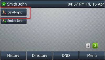 Day/Night button on the deskphone toggles the office mode from Day to Night or Night to Day, depending on the current state. A voice announcement will indicate the new, active state.