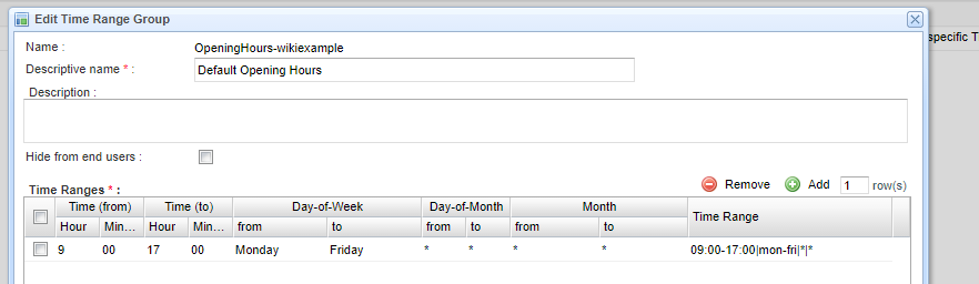 To match all hours time group select tl-all-hours (for more info on time range groups see Configuring Time Range Groups).