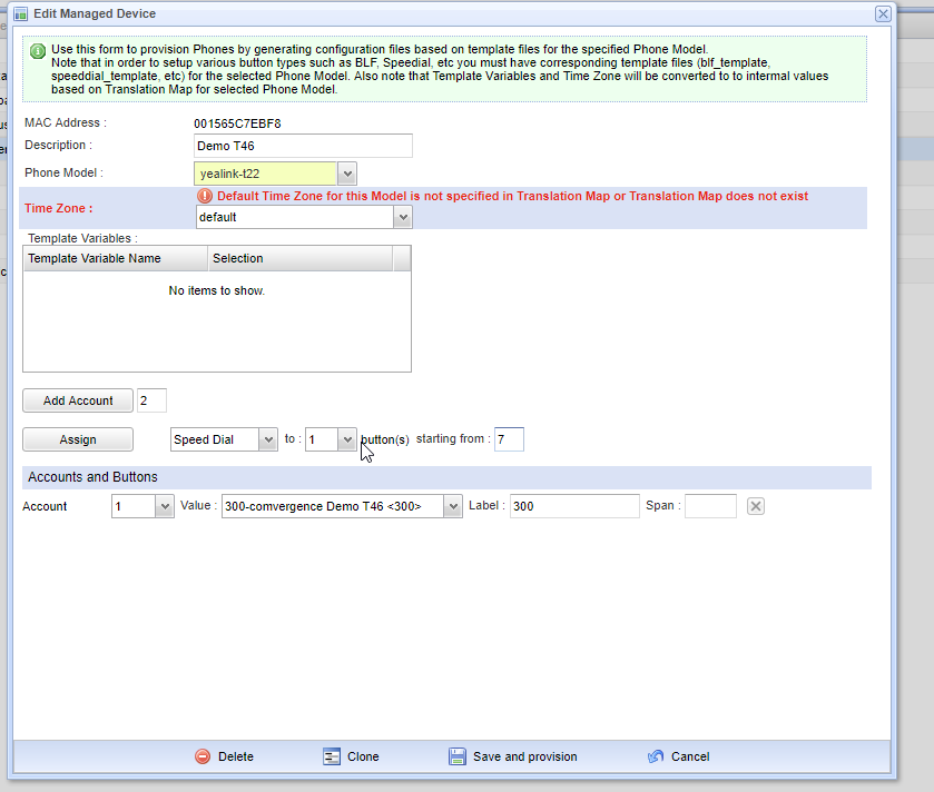 When done select “Save and Provision”. (This may take up to 10 minutes to be replicated on the provisioning server).