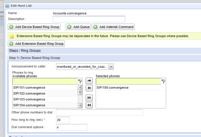 - Transfer to Hunt / Ring Group - Transfer to a Ring Group (New ring groups are charged at standard rates)