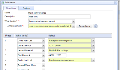 Access to IVR setup is disabled by default. Please contact our team to request access. An IVR/Auto attendant is a menu accessed by pressing keys on the phone.