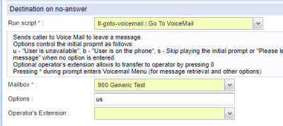The Destination on no answer it typically set to point at a voicemail, using the tl-goto-voicemail script and with the option us.