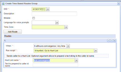 Unused numbers are listed as Unassigned, and you can create a new route for them by clicking Create Time Based Routes Group.