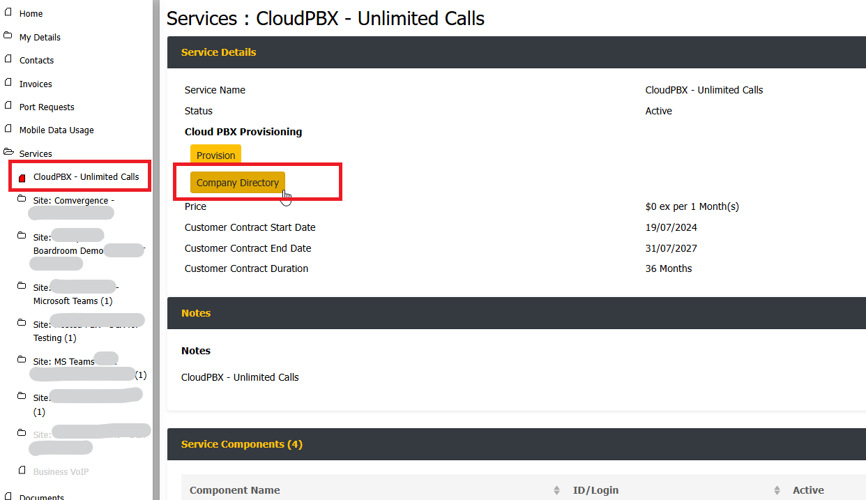 How to use it Please login to your Zone account as usual with your credentials. On the left menu, navigate to Cloud PBX → Company Directory.